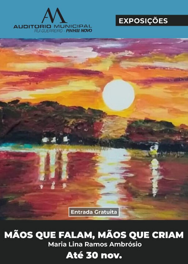 Até 30 de novembro, visite a Exposição de Pintura “Mãos que falam, mãos que criam”, de Maria Lina Ramos Ambrósio, patente no Auditório Municipal de Pinhal Novo – Rui Guerreiro, com entrada gratuita.