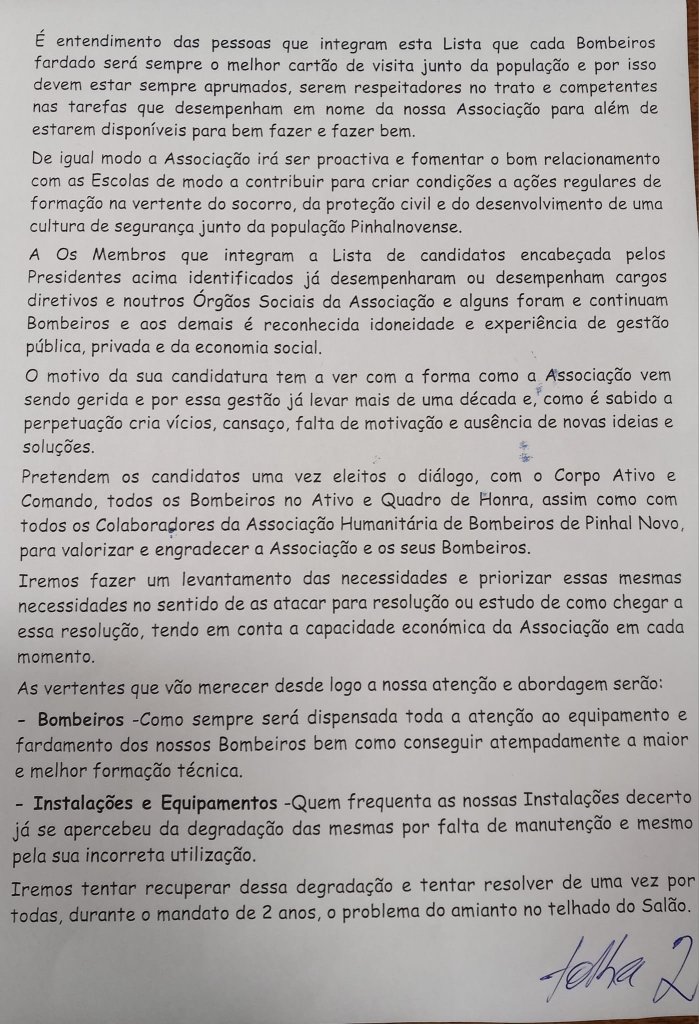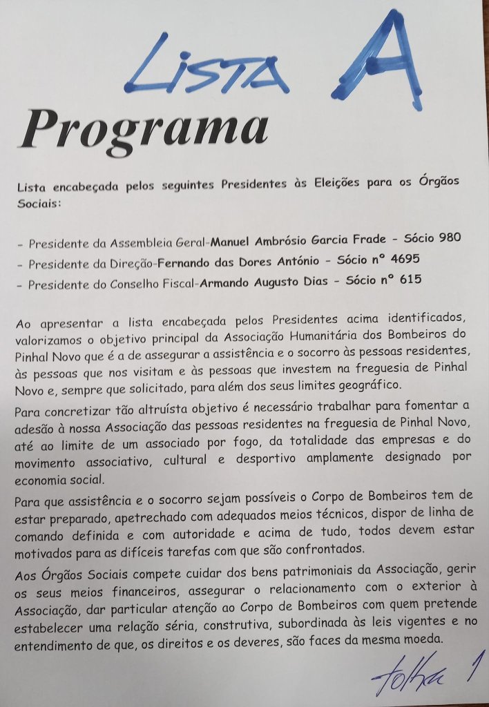 Apresentaram-se dentro do prazo concedido para tal, duas (2) Listas a sufrágio que publicamos em anexo bem como o Programa da Lista “A”.