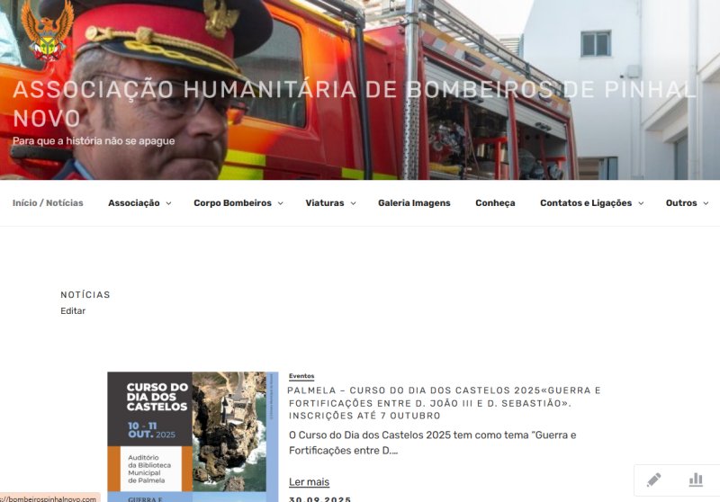 Foi criada a seguinte página no menu Corpo Bombeiros