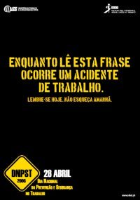 Entre as diversas iniciativas promovidas pelo ISHST para assinalar o Dia Nacional da Prevenção e Segurança no Trabalho 2006 encontram-se uma campanha de sensibilização nacional, que incluiu ações publicitárias na rádio e nos terminais Multibanco, e de divulgação, com a promoção de encontros, seminários, fóruns e mostras, bem como a cerimónia de entrega do Prémio Prevenir Mais Viver Melhor no Trabalho 2005 e a realização de uma Sessão Solene na Sala do Senado da Assembleia da República, na manhã do dia 28, com a presença do Ministro do Trabalho e da Solidariedade Social.