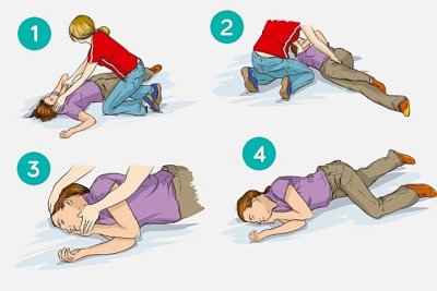 - Utilize a perna dobrada para ajudar a rolar a vítima para o seu lado. Durante este movimento mantenha uma mão a apoiar a cabeça da vítima enquanto a faz rolar.